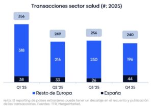 El cuarto trimestre de 2025 ha sido el periodo más activo del año en el mercado de M&A del sector salud en España, con un total de 44 transacciones. Casi el 20% de las transacciones en el sector en Europa han involucrado a empresas españolas. Operaciones seleccionadas por subsector:
